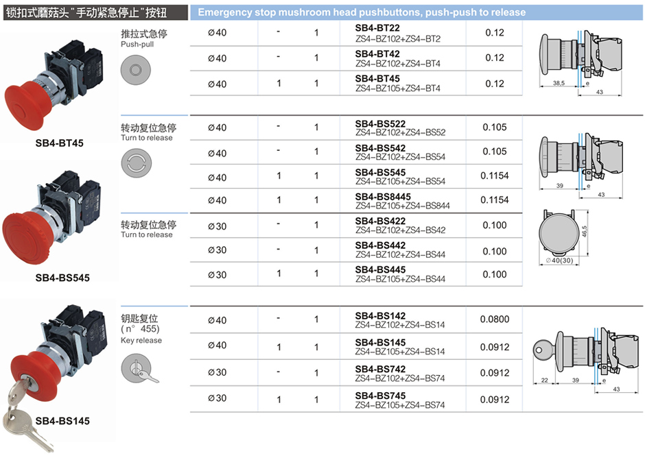 鎖扣式蘑菇頭"手動緊急停止"按鈕